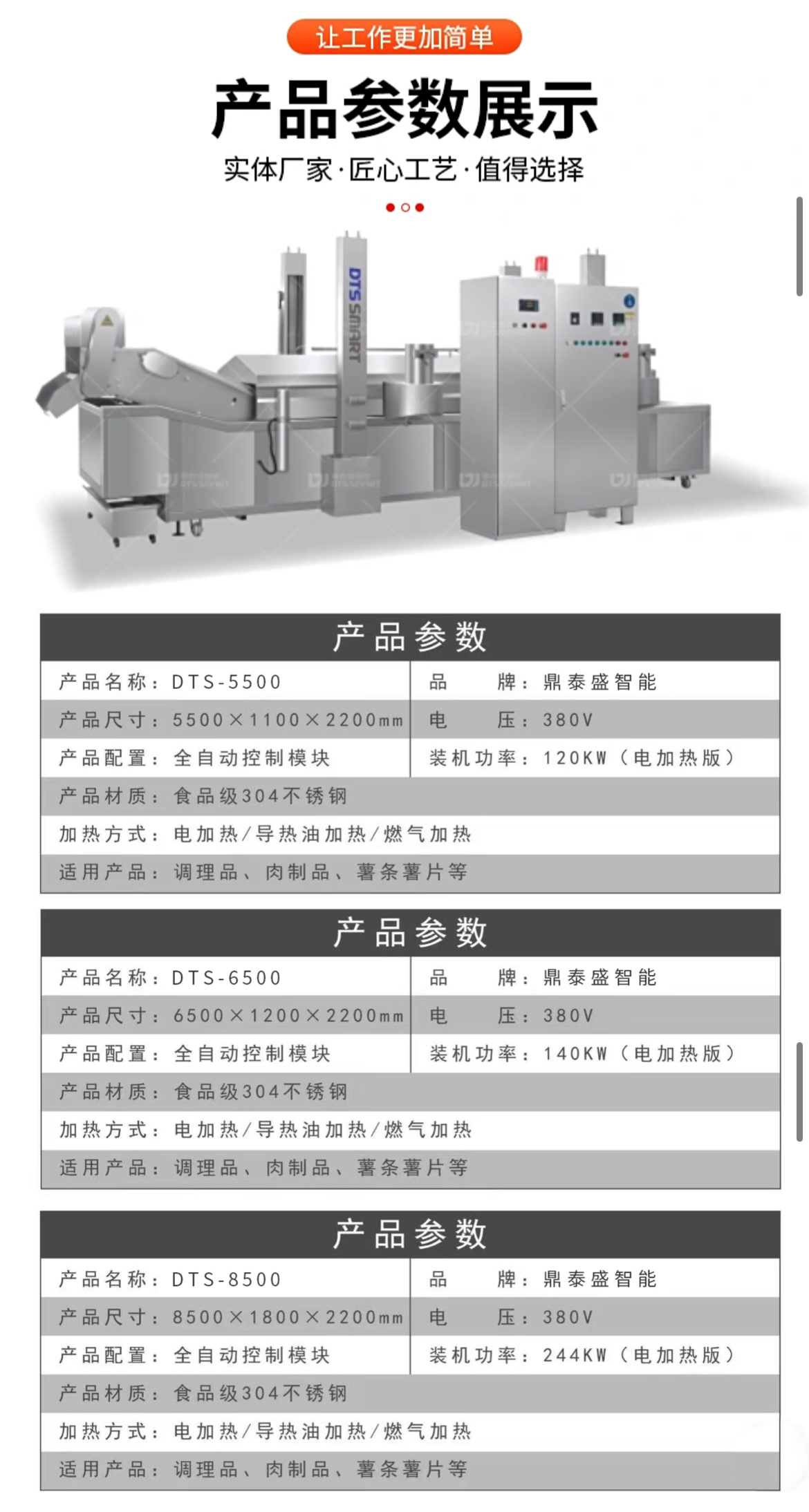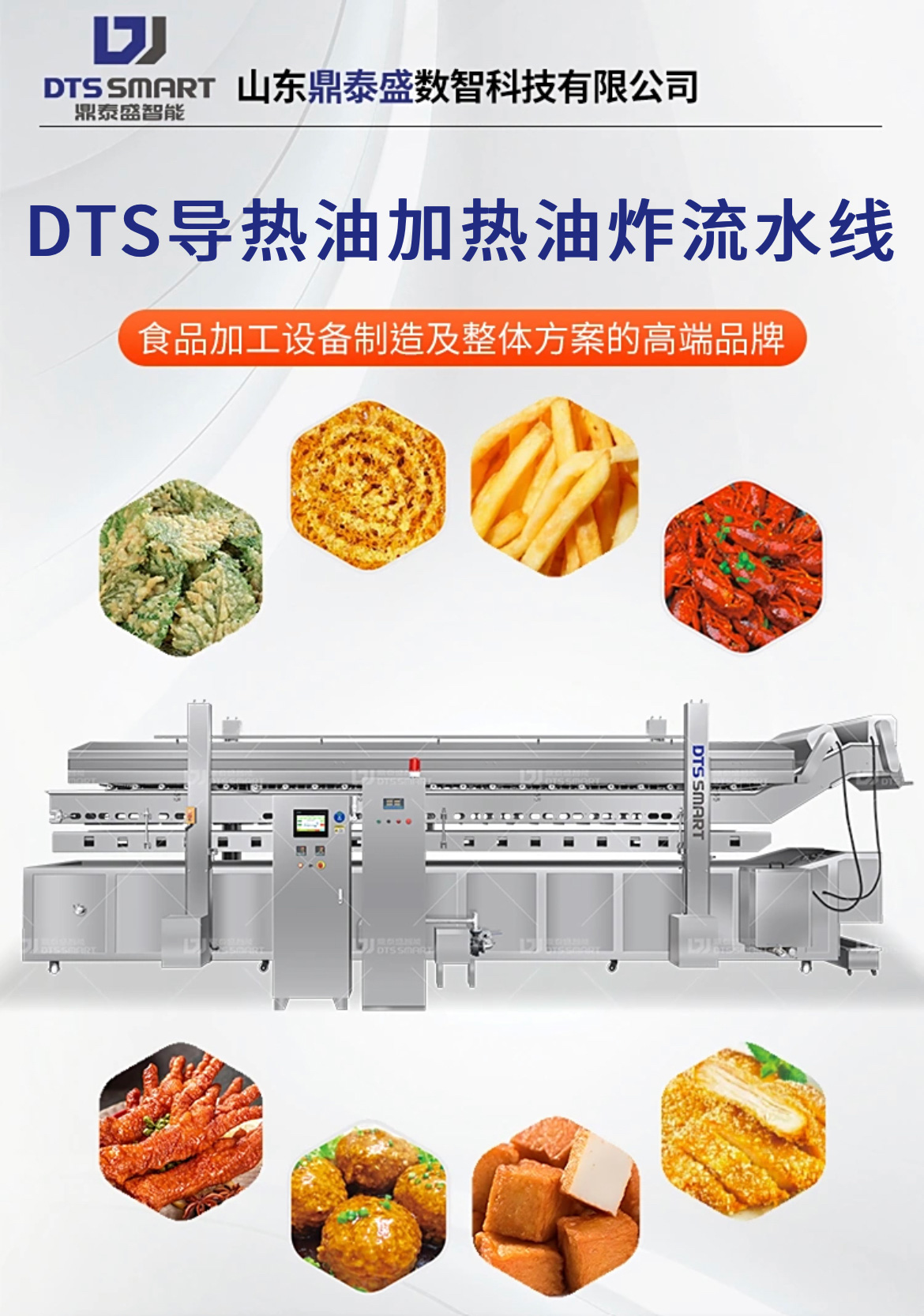 导热油加热油炸生产线是一种高效节能的连续式食品加工设备,采用导热油传导热能技术,具备自动控温、加热均匀、温度恒定等特点。通过自动排渣系统及程序化控制,显著提升油炸食品品质并降低能耗。配备双层网带输送系统,可防止食品粘连或漂浮,适用于肉类、水产、薯类、豆制品等多种休闲食品的工业化生产。