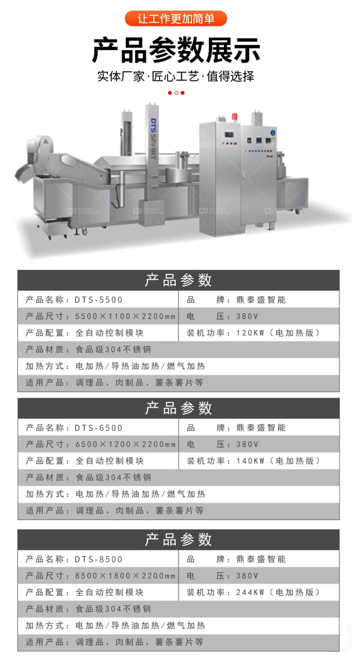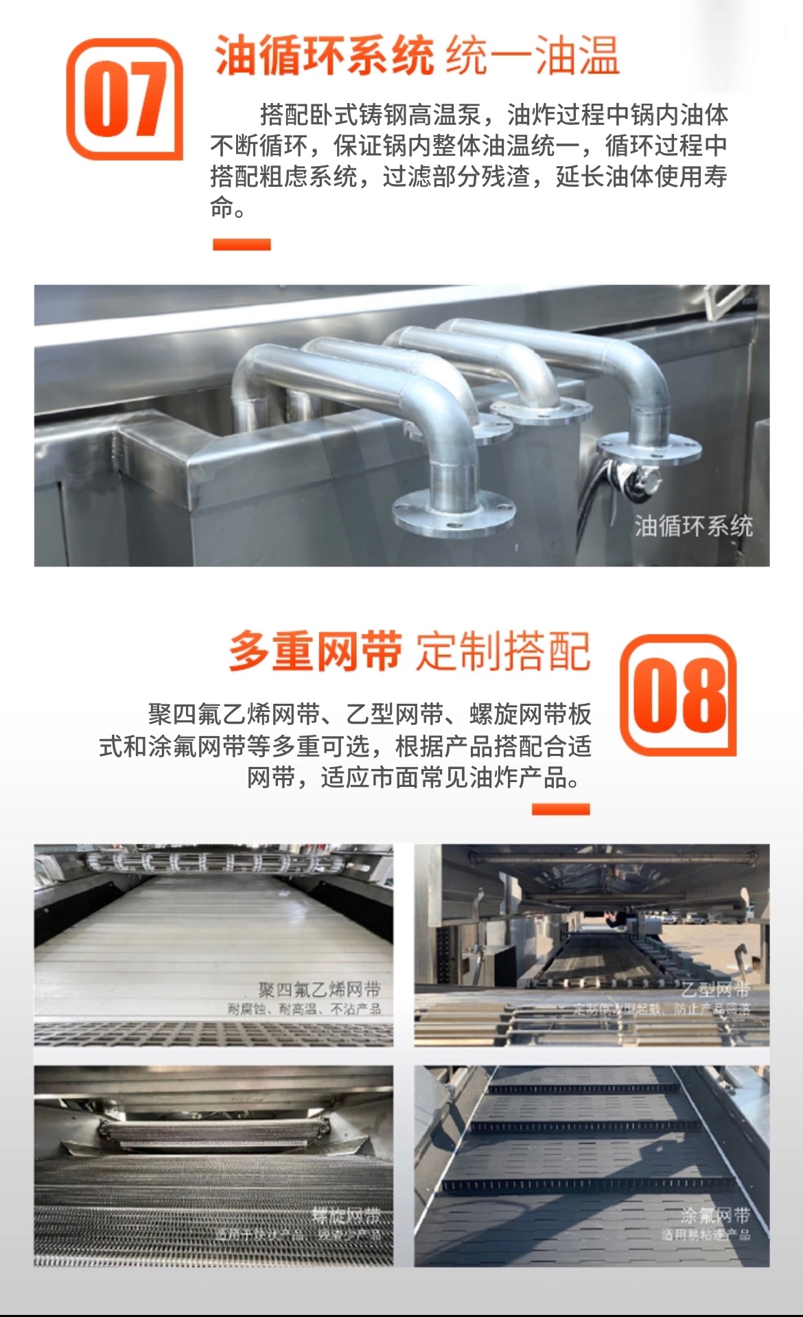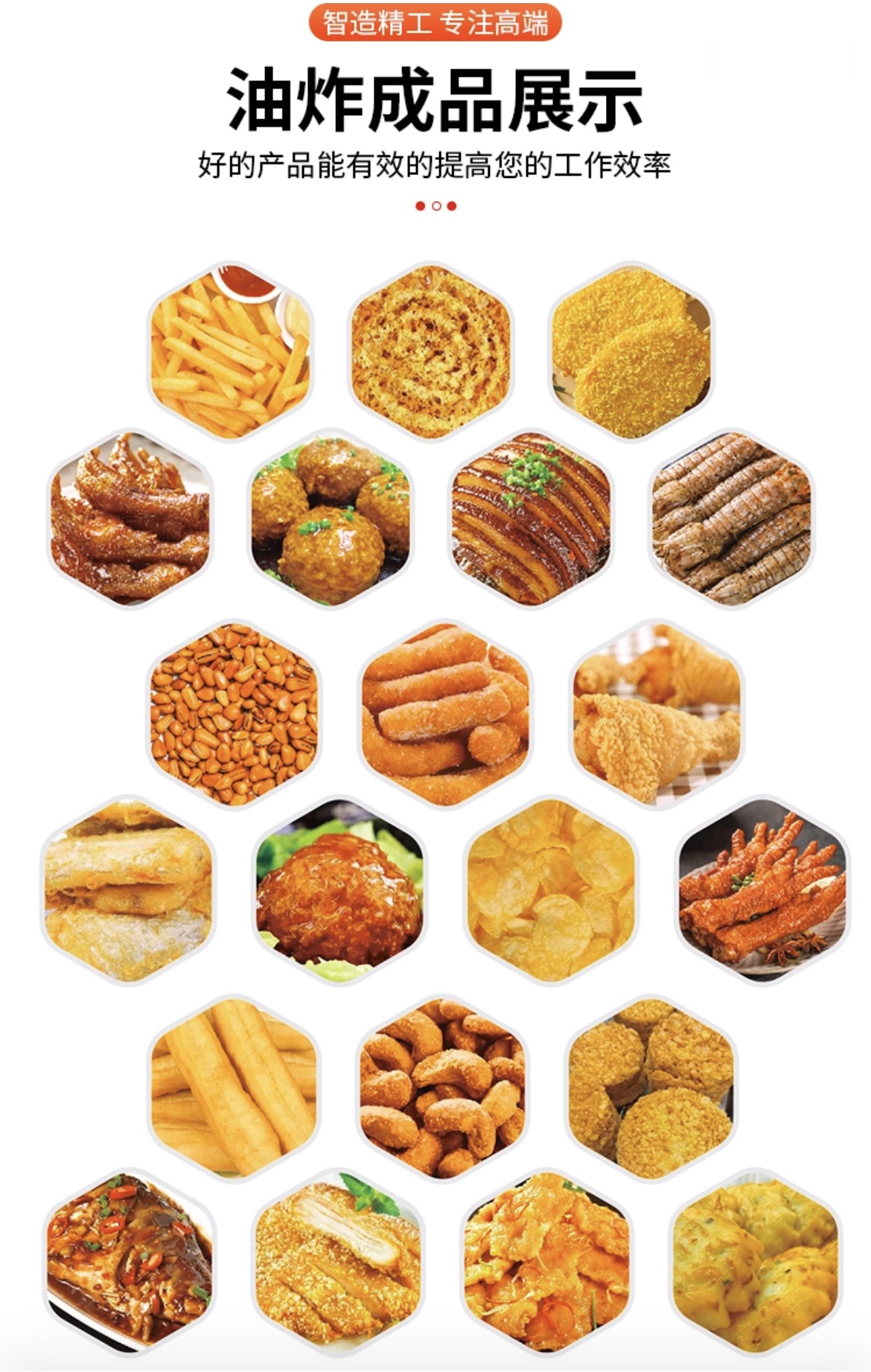 特点:此套设备可完全替代人工,省时、省力、高产、高效,切实为客户利益着想。加工系统全程网带输送,避免人为因素对产品品质造成影响。油炸机内配有自动刮渣系统,可将残渣刮出;自动卤煮机采用新型网带结构,便于清理,可替代劳动力密集的夹层锅;自动摊凉机对输送的食品进行快速降温,并将热气排到室外。合理的设计结构使得水产在加工时保持室内卫生干净整洁,符合食品加工要求。整套设备集中控制,质量成熟稳定,排除客户在生产中的一切烦恼。